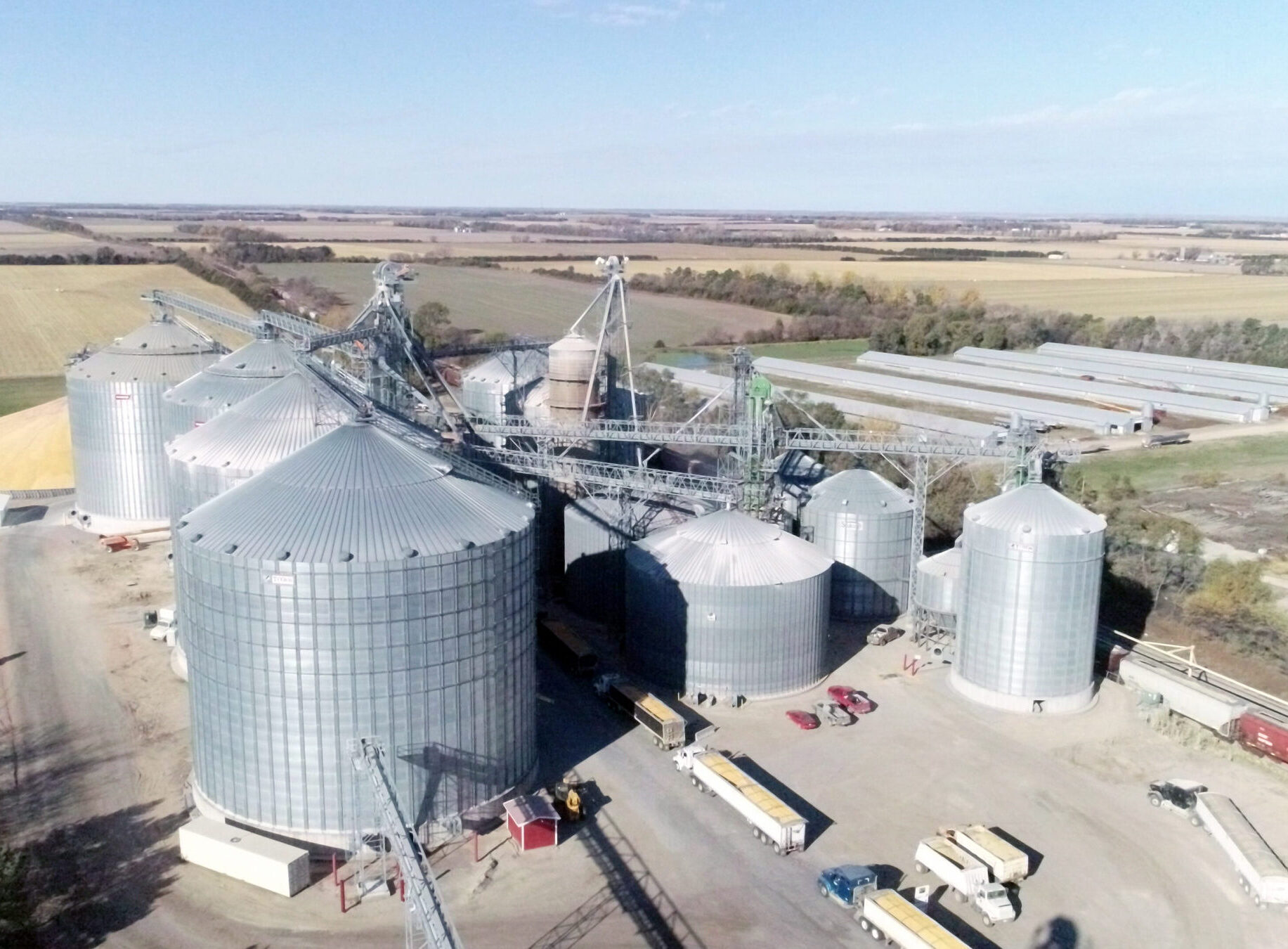 (2) 105′ diameter x 21 ring grain bins with 618,000 peak bushel capacity each.