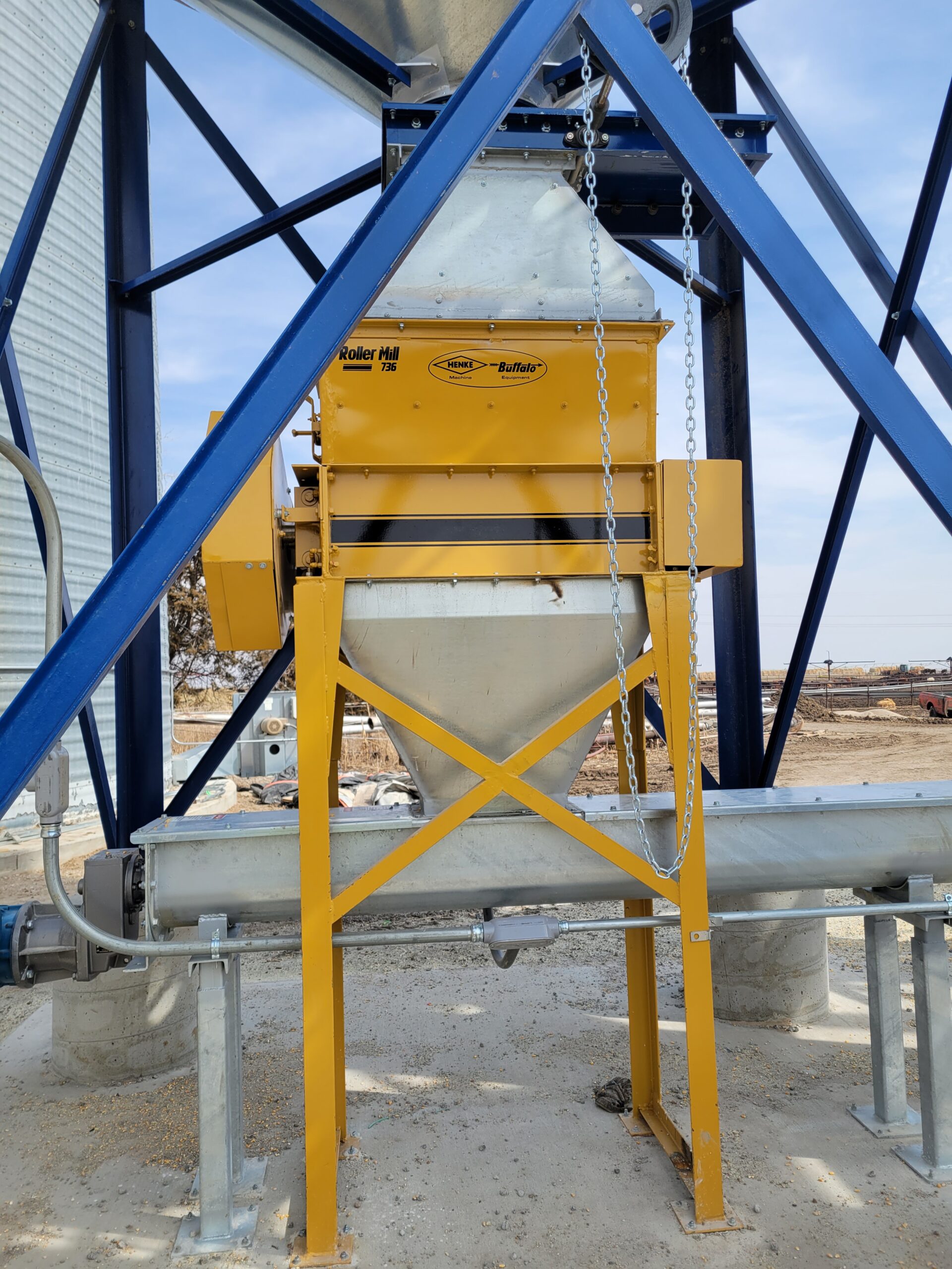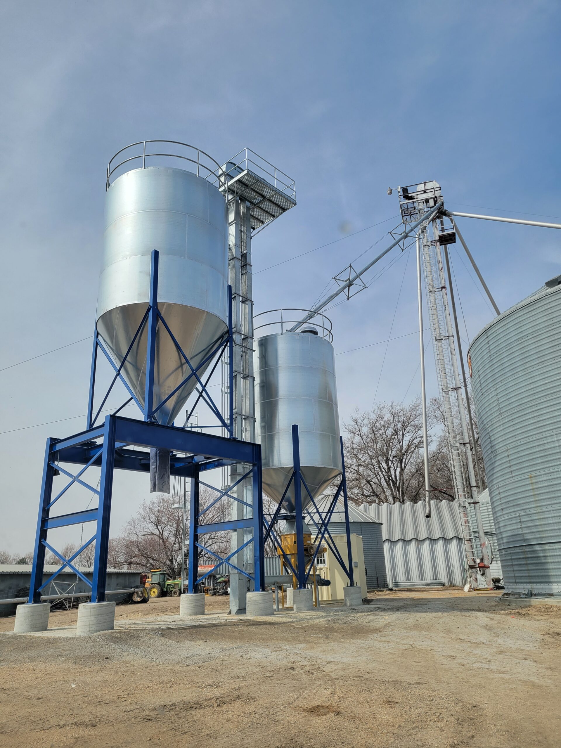 • 2,000 Bushel galvanized hopper bin on drive through structure